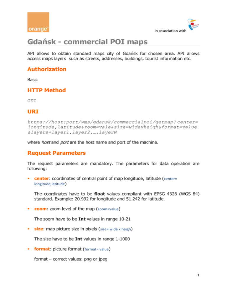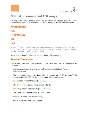 API allows to obtain standard maps city of Gdańsk for chosen area. API allows