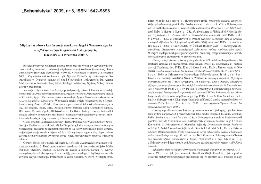 „Bohemistyka” 2009, nr 3, ISSN 1642–9893