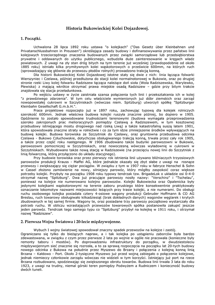 Historia Bukowieckiej Kolei Dojazdowej.