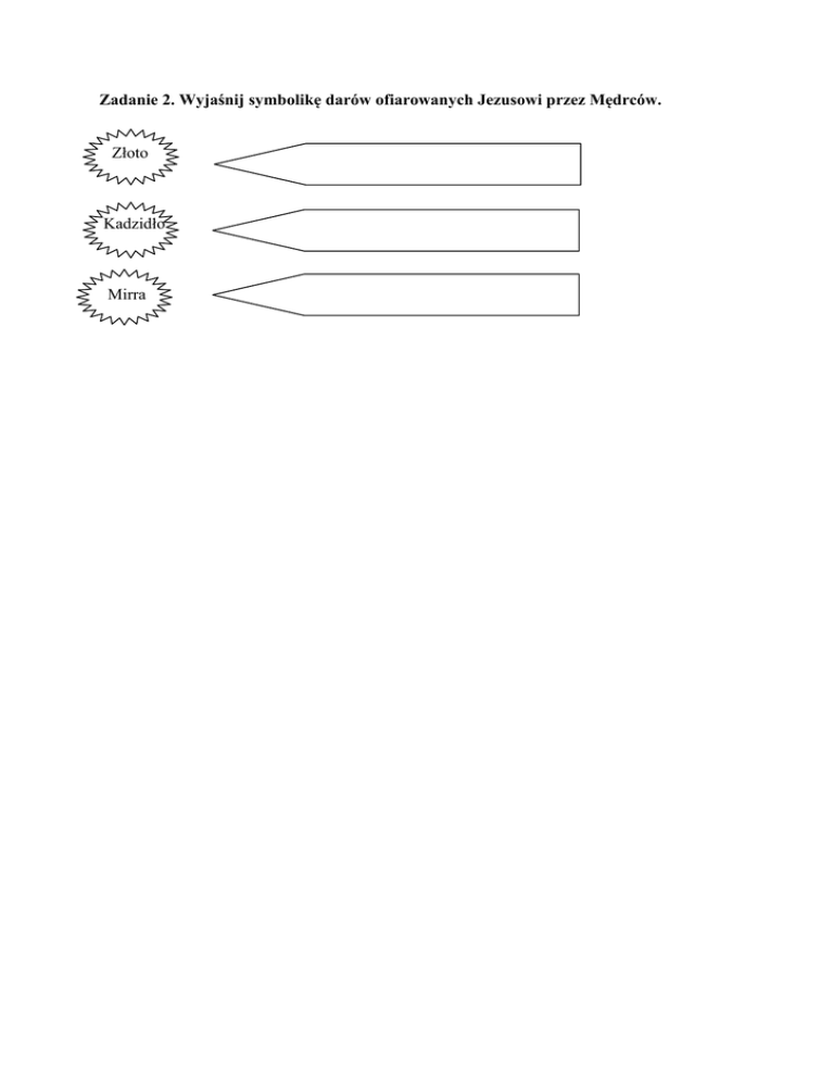 Zadanie 2. Wyjaśnij symbolikę darów ofiarowanych Jezusowi przez Mędrców. Złoto Kadzidło Mirra