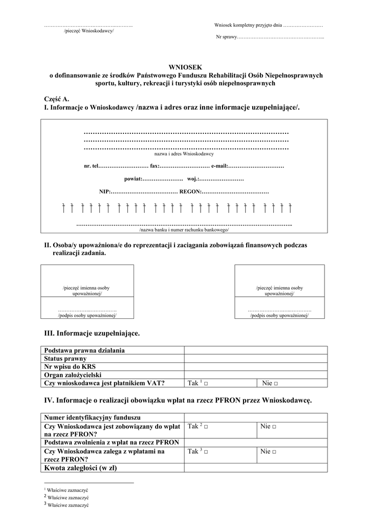 Wniosek o dofinansowanie ze środków PFRON sportu kultury