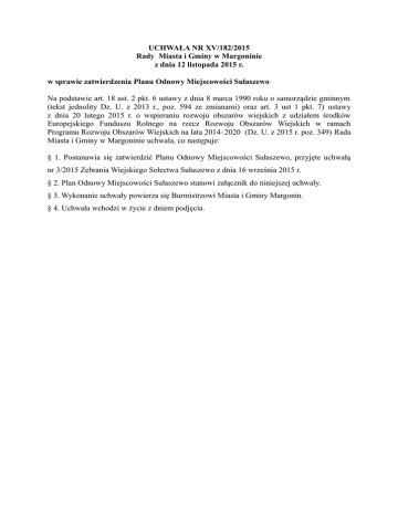 UCHWAŁA NR XV/182/2015 Rady Miasta i Gminy w Margoninie z