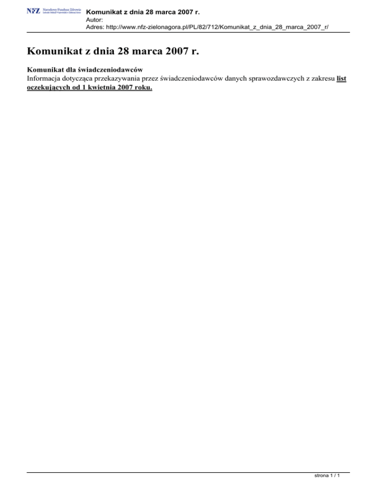 Komunikat z dnia 28 marca 2007 r.