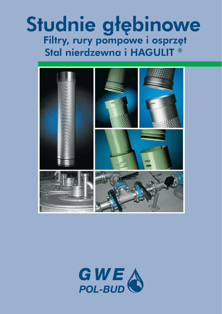 Studnie głębinowe Filtry, rury pompowe i osprzęt Stal nierdzewna i HAGULIT ® 1 Stal nierdzewna Stal nierdzewna jest odporna na korozję oraz temperaturę, spełnia wysokie wymagania mechaniczne oraz wykazuje odporność na działanie środków chemicznych. Stal nierdzewna jest idealnym surowcem do długotrwałego użytkowania w środowiskach agresywnych. Nawet stal nierdzewna może ulec korozji, jeśli powierzchnia nie była poddawana odpowiednim obróbkom lub też materiał nie był należycie dobrany do szczególnych warunków. Odpowiednia obróbka powierzchni gotowego produktu ze stali nierdzewnej nadaje mu potrzebne cechy odpornościowe. W naszej firmie obróbkę powierzchniową przeprowadzamy po wykonaniu wszystkich czynności produkcyjnych (formowaniu, cięciu, zgrzewaniu). Trawienie i pasywowanie wykonujemy we własnych warsztatach i częściowo u naszych partnerów stosujących najnowocześniejsze procesy. Dzięki temu możemy naszym klientom zagwarantować doskonałą jakość produktów ze stali nierdzewnej. Spełniamy wszelkie wymagane przy budowie studni kryteria jakościowe dotyczące stali nierdzewnej i chętnie udzielamy porad przy dokonywaniu wyboru gatunku i rodzaju materiału. Nowoczesne technologie oraz firmowy know-how gwarantują wysoką jakość naszych produktów. 2 HAGULIT ® Powłoka HAGULIT® jest wynikiem badań mających na celu spełnienie potrzeb nielimitowanego, wolnego od ograniczeń czasu użytkowania produktów stalowych wykorzystywanych w budowie studni. Proszek epoksydowy jako materiał na powłoki, opracowany został specjalnie dla nas. Nakładany jest w zaawansowanym technologicznie procesie powlekania fluidyzacyjnego, poddawanym ciągłej kontroli jakości na poziomie wszystkich parametrów. Gwarantuje to bezpieczeństwo użycia produkowanych przez nas materiałów do budowy studni. HAGULIT® charakteryzują następujące zalety użytkowania • wysoka twardość powłoki zapobiega uszkodzeniom mogącym wystąpić podczas transportu i podczas montażu • rozszerzona odporność termiczna umożliwia użytkowanie w przedziale od -30°C do +50°C • długi okres trwałości; odporność na środki używane w procesach dezynfekcji i regeneracji. Jakość HAGULIT® wynika z właściwości i udanego połączenia materiałów powłoki (proszku epoksydowego) i wstępnie przygotowanego do powlekania produktu. • minimalna wartość przenikania tlenu przez powłokę • znaczna odporność powłoki wynikająca ze starannej obróbki za pomocą śrutowania • brak infiltracji powłoki w wypadku korozji Połączenia Zatyczkowy system łączenia j (ZSM, HAGUESTA®, HAGUDOSTA®) skraca do minimum czas montażu filtrów, rur pełnych i rur pompowych Zaskakująco łatwe łączenia rur HAGULIT® i rur ze stali nierdzewnej jest wyjaśnieniem istoty systemu: bezproblemowe połączenie muf i czopów oraz późniejsze wsuwanie zatyczek gwarantuje szczelność połączenia. W celu oszczędności czasu bardzo korzystne jest stosowanie tego typu połączeń zwłaszcza na większych głębokościach. Jako alternatywę dla połączeń zatyczkowych można wybrać połączenia z gwintami rurowymi lub połączeniami kołnierzowymi wg DIN 4922 Użycie rur pompowych z połączeniami zatyczkowymi przynosi wymierne korzyści dzięki znacznej oszczędności czasu na prace montażowe. Obok połączeń zatyczkowych oferujemy rury pompowe z gwintem trójkątnym lub połączeniami kołnierzowymi zgodnymi z normami DIN. Dla szczególnych zastosowań produkujemy rury pompowe z powłoką HAGUTERM z twardej gumy Rury pompowe z połączeniami kołnierzowymi Rury pompowe ze stali nierdzewnej trawionej i pasywowanej wg DIN 4927 Rury pompowe z połączeniem kołnierzowym wg DIN 4927, kołnierze spawane DIN 2633, PN16, z dwoma wycięciami na kabel. Średnica nominalna DN 50 65 80 100 125 150 Grubość ścianki (mm) S 2,0 2,0 2,6 2,9 2,9 3,2 4,0 Średnica zewnętrzna rury d1 60,3 76,1 88,9 114,3 139,7 168,3 219,1 Średnica zewn. kołnierza D 165 185 200 220 250 285 340 Średnica podziałowa k 125 145 160 180 210 240 295 L = 1,0 m 8,6 10,3 14,1 18,1 23,0 30,0 44,8 66,2 Waga rury (kg) 200 L = 2,0 m 11,5 14,0 19,7 26,0 32,8 42,8 L = 3,0 m 14,4 17,6 25,1 34,0 42,5 56,0 87,7 L = 4,0 m 20,6 21,3 30,7 42,0 52,3 69,0 109,1 L = 5,0 m 23,5 24,9 36,2 50,0 62,1 82,0 130,5 L = 6,0 m 26,4 28,5 41,8 57,9 71,9 95,0 152,0 L= efektywna długość rury Rury pompowe z powłoką HAGULIT® wg DIN 4927 Rury pompowe wg VDI 2538, grubość powłoki ochronnej 0,3 – 0,5 mm DN 50 65 80 100 125 150 200 250 Grubość ścianki (mm) S 2,3 2,6 2,9 3,2 3,6 4,0 4,5 5,0 Średnica zewnętrzna rury d1 D k 60,3 165 125 76,1 185 145 88,9 200 160 114,3 220 180 139,7 250 210 168,3 285 240 219,1 340 295 273 405 355 Średnica zewn. kołnierza Średnica podziałowa Waga rury (kg) L = 1,0 m 8 11 13 18 24 31 44 61 L = 2,0 m 12 16 20 27 37 48 69 95 L = 3,0 m 15 21 26 36 49 65 93 129 L = 4,0 m 19 26 33 45 62 82 118 164 L = 5,0 m 23 31 40 55 75 99 143 198 L= efektywna długość rury Długość instalacyjna L Średnica nominalna S Ø d1 Rury pompowe ze stali ocynkowanej ogniowo wg DIN 4927 Rury pompowe z połączeniem kołnierzowym wg DIN 4927, kołnierze spawane DIN 2633, PN 16, z dwoma wycięciami na kabel. Średnica nominalna ØD DN 50 65 80 100 125 150 200 Grubość ścianki (mm) S 2,0 2,0 2,6 2,9 2,9 3,2 4,0 Średnica zewnętrzna rury d1 60,3 76,1 88,9 114,3 139,7 168,3 219,1 Średnica zewn. kołnierza D 165 185 200 220 250 285 340 Średnica podziałowa k 125 145 160 180 210 240 295 L = 1,0 m 8,6 10,3 14,1 18,1 23,0 30,0 44,8 66,2 Waga rury (kg) L = 2,0 m 11,5 14,0 19,7 26,0 32,8 42,8 L = 3,0 m 14,4 17,6 25,1 34,0 42,5 56,0 87,7 L = 4,0 m 20,6 21,3 30,7 42,0 52,3 69,0 109,1 L = 5,0 m 23,5 24,9 36,2 50,0 62,1 82,0 130,5 L = 6,0 m 26,4 28,5 41,8 57,9 71,9 95,0 152,0 Średnica podziałowa k L= efektywna długość rury 3 Rury pompowe z połączeniami zatyczkowymi ØD Rury pompowe ze stali nierdzewnej(1.4301, 1.4541, 1.4571) trawione i