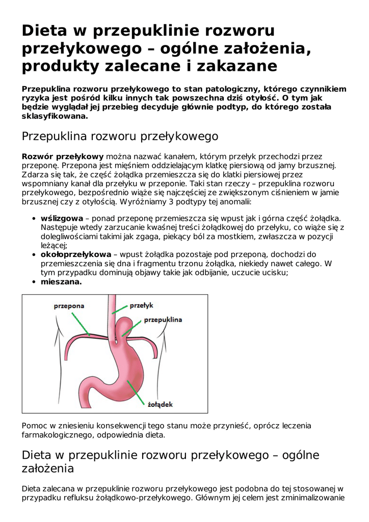 Dieta w przepuklinie rozworu przełykowego – ogólne założenia