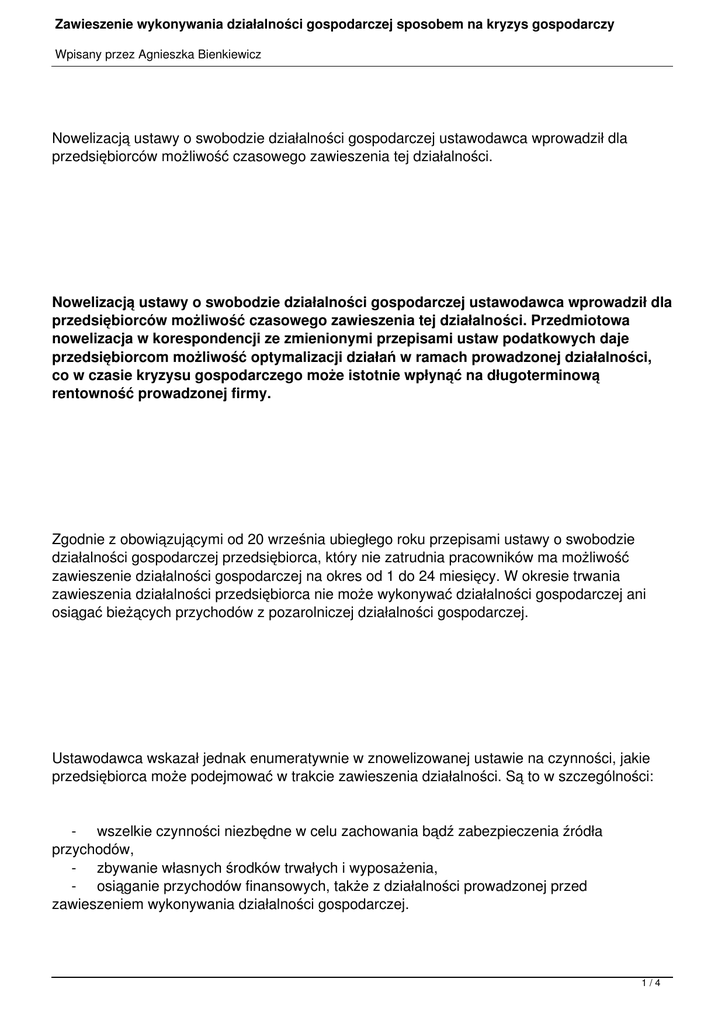 Zawieszenie wykonywania działalności gospodarczej sposobem na