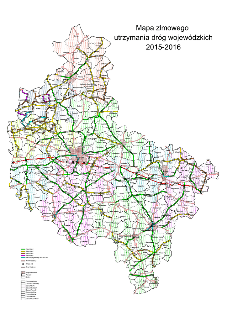 Mapa zimowego utrzymania dróg wojewódzkich 2015-2016