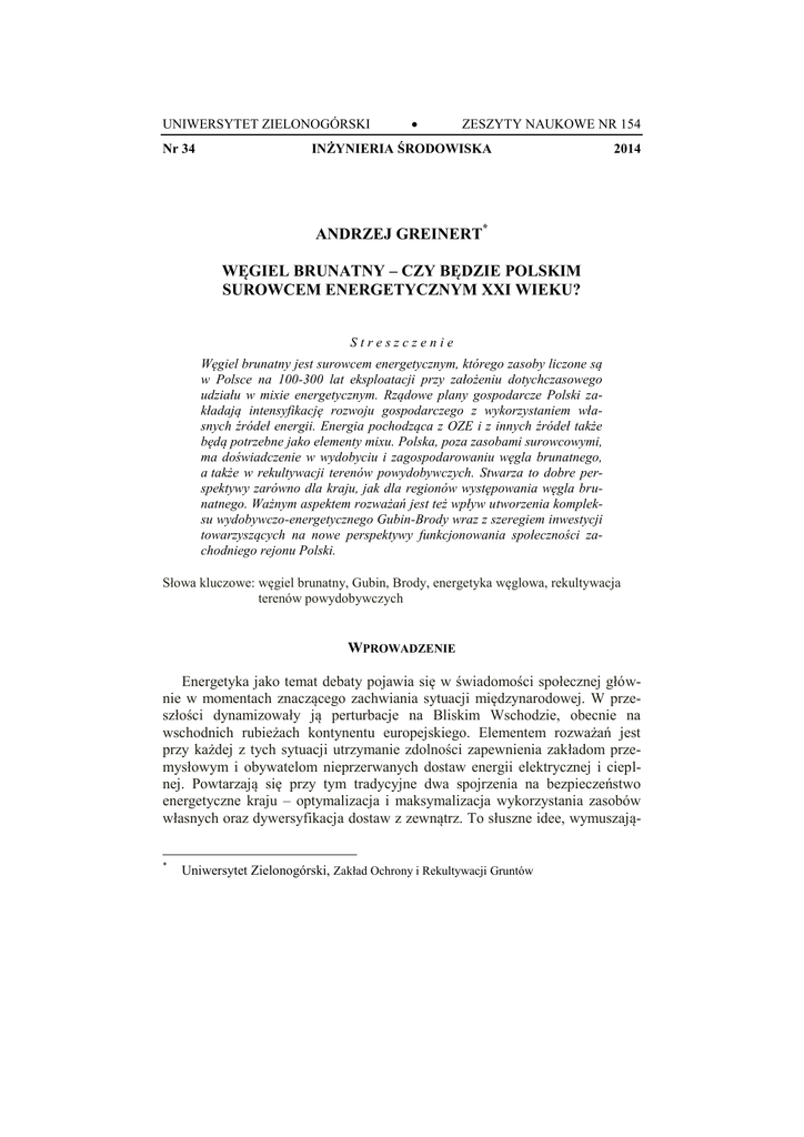 Andrzej Greinert – Węgiel brunatny - ZN UZ