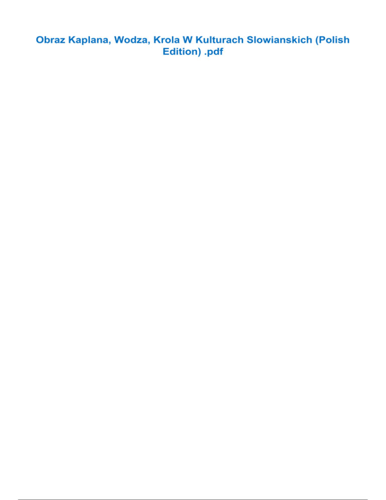 Obraz Kaplana, Wodza, Krola W Kulturach Slowianskich