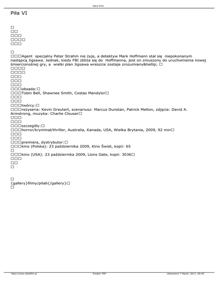 reżyseria: Kevin Greutert, scenariusz: Marcus Dunstan, Patrick Melton, zdjęcia: David A.