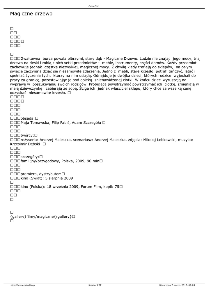 reżyseria: Andrzej Maleszka, scenariusz: Andrzej Maleszka, zdjęcia: Mikołaj Łebkowski, muzyka: