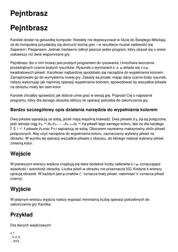 opisują obrazek. W każdym jest znaków ('.' oznacza biały piksel, natomiast 'X' oznacza piksel