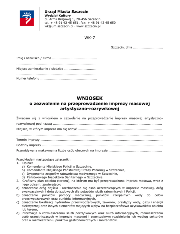 "Wniosek o zezwolenie na przeprowadzenie imprezy masowej