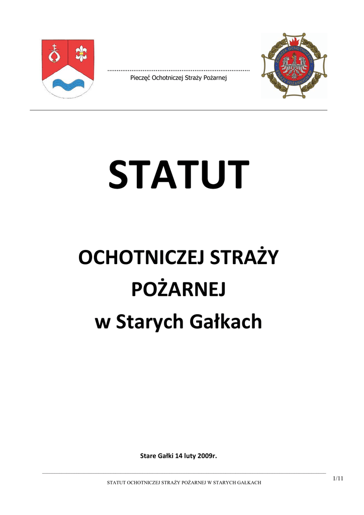 Statut OSP Stare Gałki - Ochotnicza Straż Pożarna w Starych Gałkach
