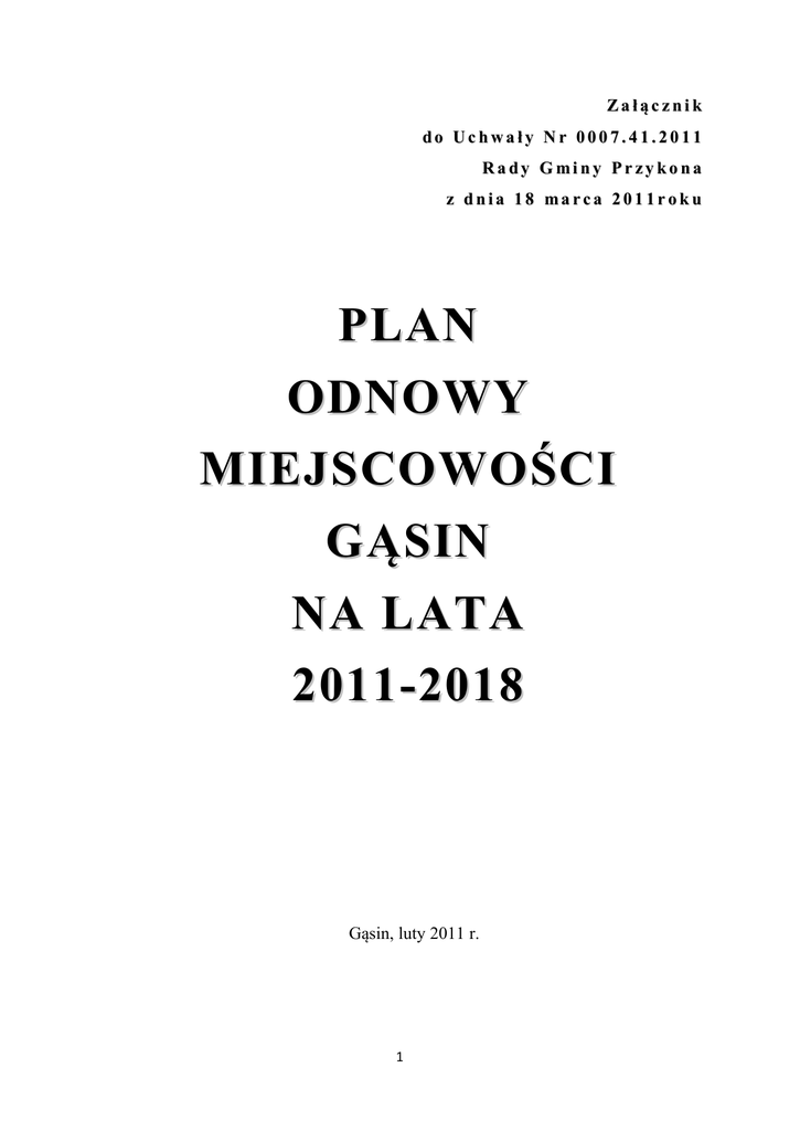 PLAN ODNOWY MIEJSCOWOŚCI GĄSIN NA LATA 2011-2018