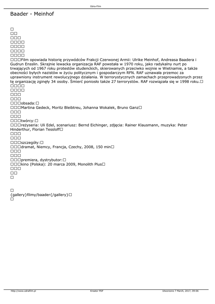 Film opowiada historię przywódców Frakcji Czerwonej Armii: Ulrike Meinhof, Andreasa Baadera i
