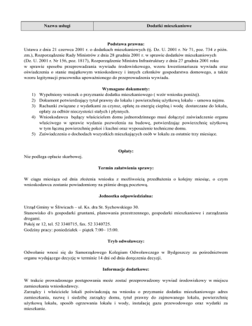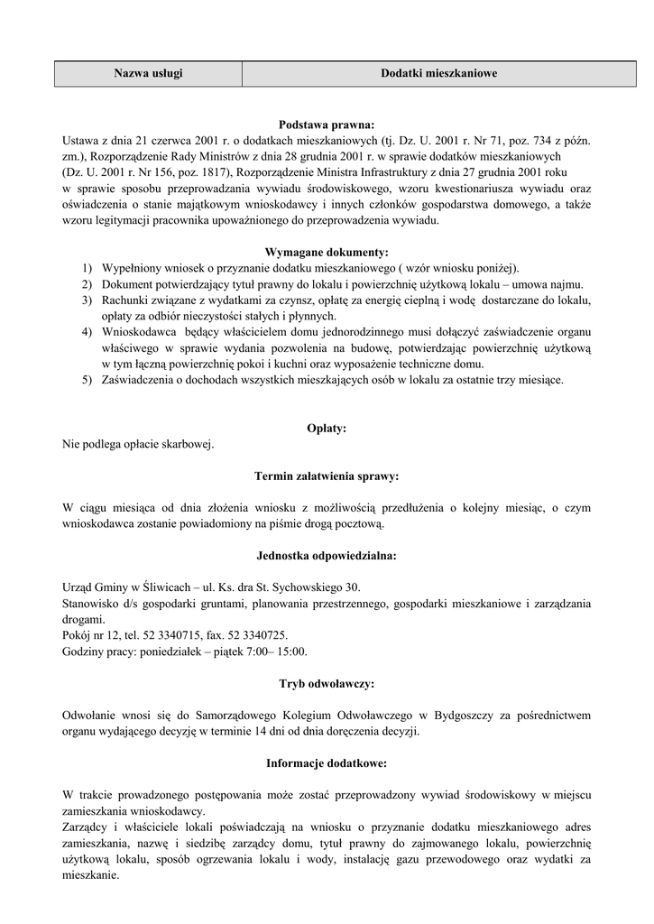 Nazwa usługi Dodatki mieszkaniowe Podstawa prawna: Ustawa z