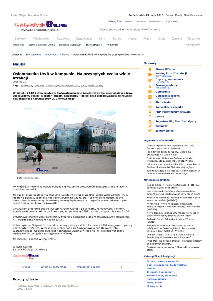 21.05.2015 - BialystokOnline.pl Osiemnastka UwB w kampusie. Na