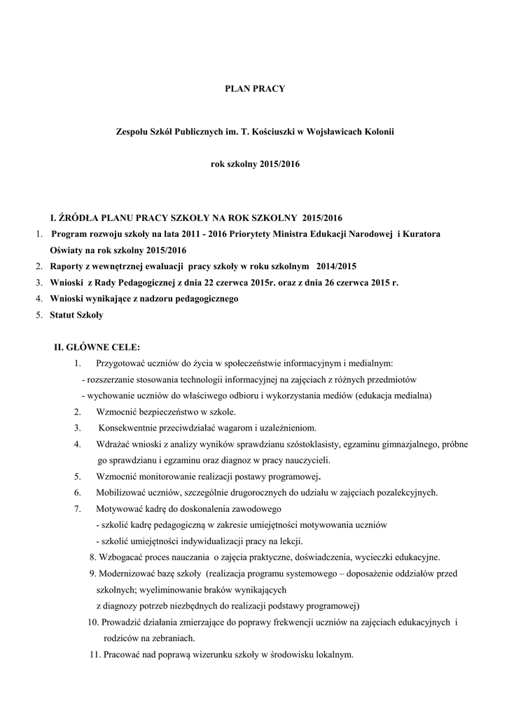 PLAN PRACY Zespołu Szkół Publicznych im. T
