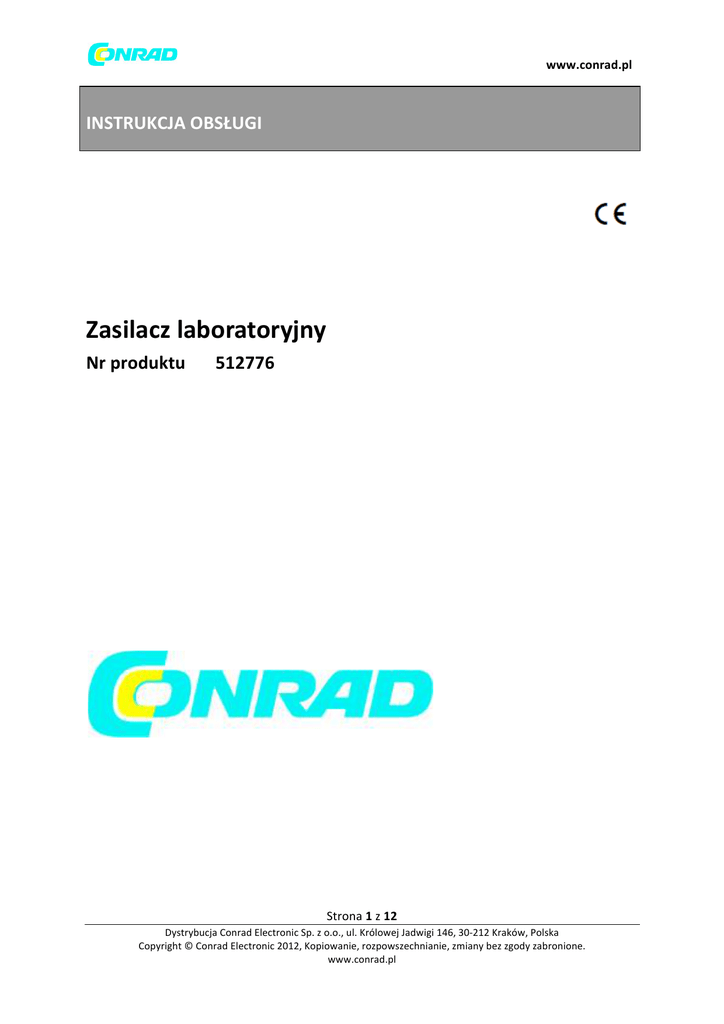 www.conrad.pl INSTRUKCJA OBSŁUGI Zasilacz laboratoryjny Nr produktu 512776 Strona 1 z 12 Dystrybucja Conrad Electronic Sp. z o.o., ul. Królowej Jadwigi 146, 30-‐212 Kraków, Polska Copyright © Conrad Electronic 2012, Kopiowanie, rozpowszechnianie, zmiany bez zgody zabronione. www.conrad.pl www.conrad.pl Użycie zgodne z zaleceniem Zasilacz laboratoryjny jest bezpotencjałowym źródłem prądu DC do obsługi urządzeń niskiego napię-‐ cia. Do dyspozycji pozostają trzy niezależne wyjścia. Wyjścia A i B mogą być regulowane i włączane za pomocą przycisków, dzięki czemu można łatwo podwoić napięcie lub natężenie. Podłączenie wejść w układzie szeregowym może spowodować powstawanie napięć > 75 V/DC. W przypadku takiego lub wyższego napięcia z powodów bezpieczeństwa należy stosować izolowane przewody/kable pomia-‐ rowe podłączane do puszek 4 mm. Dane wyjściowe zasilaczy laboratoryjnych podano poniżej: Strona 2 z 12 Dystrybucja Conrad Electronic Sp. z o.o., ul. Królowej Jadwigi 146, 30-‐212 Kraków, Polska Copyright © Conrad Electronic 2012, Kopiowanie, rozpowszechnianie, zmiany bez zgody zabronione. www.conrad.pl www.conrad.pl Art. nr 51 27 73 ID produktu VSP 2206 51 27 74 VSP 2403 51 27 75 VSP 2405 51 19 19 VSP 2410 51 27 76 VSP 2653 Wyjście A 0,1 -‐ 20 V/DC 0 -‐ 6 A 0,1 -‐ 40 V/DC 0 -‐ 3 A 0,1 -‐ 40 V/DC 0 -‐ 5 A 0,1 -‐ 40 V/DC 0 -‐ 5 A 0,1 -‐ 65 V/DC 0 -‐ 3 A Wyjście B 0,1 -‐ 20 V/DC 0,1 -‐ 6 A 0,1 -‐ 40 V/DC 0 -‐ 3 A 0,1 -‐ 40 V/DC 0 -‐ 5 A 0,1 -‐ 40 V/DC 0 -‐ 5 A 0,1 -‐ 65 V/DC 0 -‐ 3 A Wyjście C 0,1 -‐ 6 V/DC maks. 1,5 A 0,1 -‐ 6 V/DC maks. 1,5 A 0,1 -‐ 6 V/DC maks. 1,5 A 0,1 -‐ 6 V/DC maks. 1,5 A 0,1 -‐ 6 V/DC maks. 1,5 A Możliwa jest płynna regulacja napięcia i siły natężenia na wyjściu A i B oraz napięcia na wyjściu C. Wyświetlanie napięcia i natężenia na wyjściu C następuje po wciśnięciu wyjścia B. Napięcie i natęże-‐ nie można ustawiać za pomocą ogólnego i szczegółowego pokrętła umożliwiając w ten sposób szyb-‐ kie i precyzyjne ustawienie wartości. Parametry są wyświetlane na dwóch oddzielnych, przejrzystych monitorach LCD. Napięcie wyjściowe na wyjściu A i B można ustawić za pomocą zewnętrznego napię-‐ cia i utrzymywać stabilnie za pomocą funkcji czujnika sense. Dostępne przyciski pozwalają na ustawienie ograniczenia natężenia przy zasilaniu prądem stałym. Podczas nanoszenia ustawień nie ma konieczności stosowania mostka zwarciowego na wyjściu. Urzą-‐ dzenie jest odporne na przeciążenie oraz zwarcia i zawiera blokadę temperatury. Zasilacz laborato-‐ ryjny ma 1 klasę ochrony i jest przeznaczony do podłączania do gniazdek z uziemieniem i typowego dla gospodarstw domowych napięcia zmiennego 230 V/AC. Puszka z uziemieniem jest połączona z uziemieniem ochronnym na wtyczce. Zabrania się korzystania z urządzenia w przypadku niekorzystnych warunków pogodowych. Do niekorzystnych warunków pogodowych zalicza się: -‐ wilgoć i wysoką wilgotność powietrza -‐ kurz i palne gazy, opary lub rozpuszczalniki -‐ burze lub warunki zbliżone do burzowych tj. obecność silnych pól elektrostatycznych etc. Korzystanie z urządzenia w sposób odbiegający od opisanego prowadzi do uszkodzenia produktu, poza tym wiąże się z zagrożeniami tj. zwarcie, pożar, porażenie prądem etc. Zabrania się przeprowa-‐ dzania jakichkolwiek zmian w produkcie! Należy bezwzględnie stosować się do wskazań bezpieczeństwa! Elementy obsługi patrz strona otwierana 1. Przełącznik sieciowy (I = On/0 = Off) 2. Wyświetlacz trybu pracy 3. Wyświetlacz ciekłokrystaliczny (tzw. wyświetlacz) dla wyjścia A 4. Status wyjścia A (CV -‐ napięcie stałe, OT -‐ przegrzanie, CC -‐ ograniczenie prądu) 5. Przełącznik "series tracking" dla układu szeregowego wyjścia A i B. Regulacja obydwóch wyjść na-‐ stępuje za pomocą regulatora nadrzędnego z wyjścia A. Strona 3 z 12 Dystrybucja Conrad Electronic Sp. z o.o., ul. Królowej Jadwigi 146, 30-‐212 Kraków, Polska Copyright © Conrad Electronic 2012, Kopiowanie, rozpowszechnianie, zmiany bez zgody zabronione. www.conrad.pl www.conrad.pl 6. Przełącznik "series" dla układu szeregowego wyjścia A i B (podwojenie natężenia). Regulacja na-‐ stępuje oddzielnie. 7. Przełącznik "parallel" dla układu równoległego wyjścia A i B (podwojenie napięcia). Regulacja na-‐ pięcia obydwóch wyjść następuje za pomocą regulatora nadrzędnego z wyjścia A. 8. Przełącznik "individual". Każde wyjście jest regulowane niezależnie od siebie. 9. Status wyjścia B (CV -‐ napięcie stałe, OT -‐ przegrzanie, CC -‐ ograniczenie prądu) 10. Wyświetlacz ciekłokrystaliczny (tzw. wyświetlacz) dla wyjścia B 11. Wyświetlanie przeciążenia dla wyjścia C (ogranicznik prądu jest włączony) 12. Regulator napięcia na wyjściu C 13. Przycisk wyświetlania napięcia i natężenia na wyjściu C na wyświetlaczu wyjścia B (10) 14. Puszka przyłączeniowa bieguna ujemnego na wyjściu C 15. Puszka przyłączeniowa bieguna dodatniego na wyjściu C 16. Puszka przyłączeniowa bieguna ujemnego na wyjściu B 17. Puszka przyłączeniowa bieguna dodatniego na wyjściu B 18. Regulator natężenia na wyjściu B (coarse -‐ regulacja ogólna, fine -‐ regulacja precyzyjna) 19. Regulator napięcia na wyjściu B (coarse -‐ regulacja ogólna, fine -‐ regulacja precyzyjna) 20. Puszka przyłączeniowa "potencjał ziemi" 21. Regulator natężenia na wyjściu A (coarse -‐ regulacja ogólna, fine -‐ regulacja precyzyjna) 22. Regulator napięcia na wyjściu B (coarse -‐ regulacja ogólna, fine -‐ regulacja precyzyjna) 23. Puszka przyłączeniowa bieguna ujemnego na wyjściu A 24. Puszka przyłączeniowa bieguna dodatniego na wyjściu A 25. Stojak z przodu urządzenia -‐ ruchomy 26. Uchwyt bezpiecznika sieciowego 27. Złącze IEC z uziemieniem do kabla sieciowego 28. Listwa za