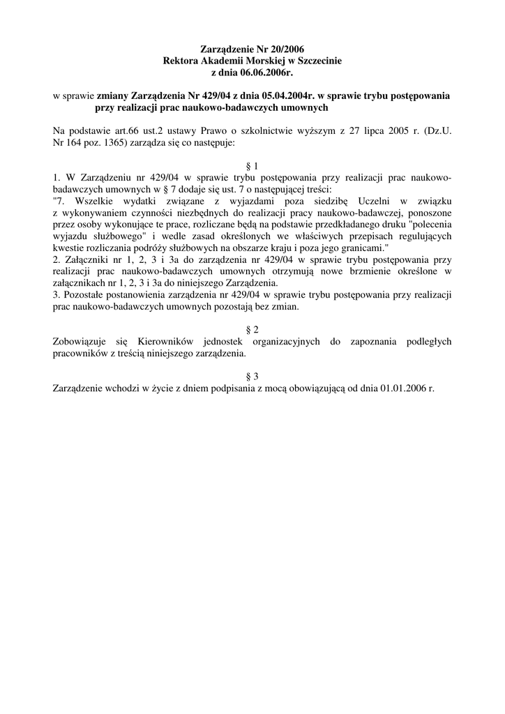 Zarządzenie Nr 20/2006 Rektora Akademii Morskiej w Szczecinie z