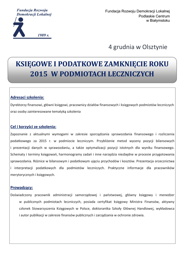 Pobierz pełną ofertę szkolenia - Fundacja Rozwoju Demokracji