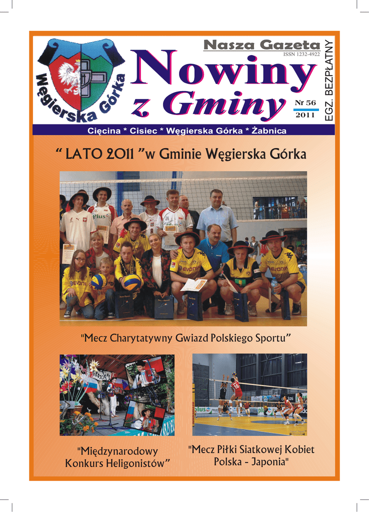 Egz. Nr 56 2011 “ LATO 2011 ”w Gminie Wêgierska Górka "Mecz Charytatywny Gwiazd Polskiego Sportu” "Miêdzynarodowy Konkurs Heligonistów” "Mecz Pi³ki Siatkowej Kobiet Polska - Japonia" Z pracy Urzędu OD RADY GMINY WĘGIERSKA GÓRKA – 21. 06. 2011R. Już za parę dni, za dni parę Jesteśmy w pół drogi. Droga weźmiesz plecak swój i gitarę. pędzi z nami bez wytchnienia. Pożegnania kilka słów, Chciałbym i mój ślad na drodze Pitagoras, bądźcie zdrów, ocalić od zapomnienia. Do widzenia wam, canto, cantare. K. I. Gałczyński L.J. Kern W naszej Gminie 395 przedszkolaków, 940 uczniów szkół podstawowych i 542 gimnazjalistów kończy rok szkolny 2010/2011. Rodzicom, Nauczycielom, Wszystkim Pracownikom Oświaty oraz Dzieciom i Młodzieży składam podziękowanie za wytrwałość i całoroczny trud nauki i pracy szkolnej. Jednocześnie życzę Wszystkim wakacyjnego odpoczynku. Niech nowe boiska szkolne i sale sportowe będą właściwie wykorzystane przez wszystkich użytkowników i pozwolą rozwijać sprawność fizyczną tak bardzo potrzebną każdemu człowiekowi. Rada Gminy będzie czynić starania, aby nowe obiekty sportowe powstały również przy Szkole Podstawowej nr 2 w Cięcinie oraz przy Zespole Szkół Zawodowych i Ogólnokształcących w Węgierskiej Górce. Na wakacjach i w dalszym życiu niech Wszystkim towarzyszą słowa i czyny Patronów Szkolnych tj.: Św. Franciszka z Asyżu, Św. Brata Alberta, Błogosławionego Jana Pawła II, Ks. Prof. Józefa Tischnera, Krzysztofa Kamila Baczyńskiego, Obrońców Węgierskiej Górki i Partyzantów Polskich. Renowacja zabytkowego Kościoła p.w. Św. Katarzyny w Cięcinie trwa. Kieruję serdeczne podziękowanie Wszystkim Ofiarodawcom i Organizatorom tego wspaniałego dzieła. „Ochrona zubożałego przez czas i wojny dziedzictwa artystycznego, opieka nad dziełami, które są żywymi świadectwami i kultu i kultury, musi stać się dla nas wszystkich obowiązkiem sumienia …” (Ks. J. ST. Pasierb: „Ochrona zabytków sztuki kościelnej”, wyd. Pallottinum 1971) Uchwała Nr VII/55/2007 Rady Gminy Węgierska Górka z dnia 29 czerwca 2007r. W sprawie trybu postępowania o udzielanie dotacji na prace konserwatorskie, restauratorskie i roboty budowlane przy zabytku wpisanym do rejestru zabytków oraz sposobu jej rozliczania i sposobu kontroli. (…) § 1. Uchwała określa tryb postępowania o udzielanie dotacji celowej na prace konserwatorskie, restauratorskie i roboty budowlane, przy zabytku wpisanym do rejestru zabytków oraz sposób jej rozliczania i sposób kontroli wykonywania zleconego zdania, mając na uwadze zapewnienie jawności postępowania o udzielenie dotacji i jej rozliczenia. § 2. 1. Dotacja może być udzielona osobom fizycznym lub jednostkom organizacyjnym posiadającym tytuł prawny do zabytku znajdującego się na terenie Gminy Węgierska Górka, wpisanego do rejestru zabytków. 2. Wielkość środków na dotacje celowe z przeznaczeniem na prace konserwatorskie, restauratorskie i roboty budowlane przy zabytku wpisanym do rejestru zabytków, ustalana jest w uchwale budżetowej. Przewodniczący Rady mgr Leon Figura Ołtarz Św. Anny podobnie jak ołtarz N.S.J. pochodzi z czasów rozbudowy kościoła w latach 1655-1657. Zwieńczenie ołtarza zdobi obraz św. Magdaleny – bo bokach rzeźby: św. Floriana i św. Kazimierza. Na predelli tego ołtarza znajduje się barakowy obraz olejny na desce, przedstawiający „Hołd pasterzy”. W budowie i zdobnictwie tego ołtarza występują elementy klasycyzujące. Panu Wójtowi PIOTROWI TYRLIKOWI z okazji Imienin życzę wszelkiej pomyślności w dalszym życiu rodzinnym i zawodowym. Przygotował i opracował V-ce Przewodniczący Rady Gminy Węgierska Górka mgr Leon Figura NOWINY z GMINY Z pracy Urzędu Raport Wójta Gminy – LATO Okres wakacji to czas przeznaczony na odpoczynek i zregenerowanie sił po trudach szkolnych czy codziennych zmaganiach. Aby uśmiech, zabawa i dobre samopoczucie towarzyszyły mieszkańcom oraz przyjezdnym gościom tradycyjnie już Gmina Węgierska Górka, jak również miejscowi gestorzy ruchu turystycznego tj. właściciele pensjonatów, stowarzyszenia turystyczne czy sportowe przygotowali bogatą ofertę imprez wakacyjnych. W kalendarium imprez na lato 2011, które przygotowała Gmina Węgierska Górka możemy odnotować między innymi następujące imprezy: * 02.07.2011 XIX Puchar Wójta w Piłce Nożnej – Festyn na Powitanie Lata. Turniej przeznaczony dla młodzików i seniorów zrzeszonych w klubach sportowych działających na terenie naszej gminy. W ramach rozgrywek zostaną wyłonieni najlepsi zawodnicy obu turniejów. Gminne święto piłki nożnej zakończy festyn. Impreza odbędzie się na boisku PUKS „Maksymilian” w Ciścu. * 09.07.2011 Amatorski Turniej Piłki Plażowej. Na boisku plażowym przy ul. 3 Maja w Węgierskiej Górce rozegrany zostanie po raz pierwszy Turniej Piłki Plażowej. Udział mogą wziąć wszyscy amatorzy. Turniej przeznaczony jest zarówno dla kobiet, jak i mężczyzn – max 10 par. Trzy pierwsze miejsca zostaną nagrodzone pucharami ufundowanymi przez Wójta Gminy Węgierska Górka. * 10.07.2011 Wakacyjne wycieczki rodzinne „Szlakiem papieskim”, * 24.07.2011 Wakacyjne wycieczki rodzinne „Szlakiem fortyfikacji”, * 14.08.2011 Wakacyjne wycieczki rodzinne „Szlakiem papieskim”, * 21.08.2011 Wakacyjne wycieczki rodzinne „Szlakiem fortyfikacji”. Dla wszystkich chętnych, chcących aktywnie spędzać czas, proponujemy dla turystów indywidualnych cykliczny turystyczny program wakacyjny, gdzie w CZTERY NIEDZIELE WAKACJI odbywać się będą wycieczki SZLAKIEM PAPIESKIM lub SZLAKIEM FORTYFIKACJI. Każdorazowo można weryfikować książeczkę G.O.T. Obowiązuje przestrzeganie Karty Turysty oraz strój turystyczny. Ubezpieczenie we własnym zakresie. Zgłoszenia przyjmuje Punkt Informacji Turystycznej Węgierska Górka znajdujący się w budynku Hali Widowiskowo-Sportowej w