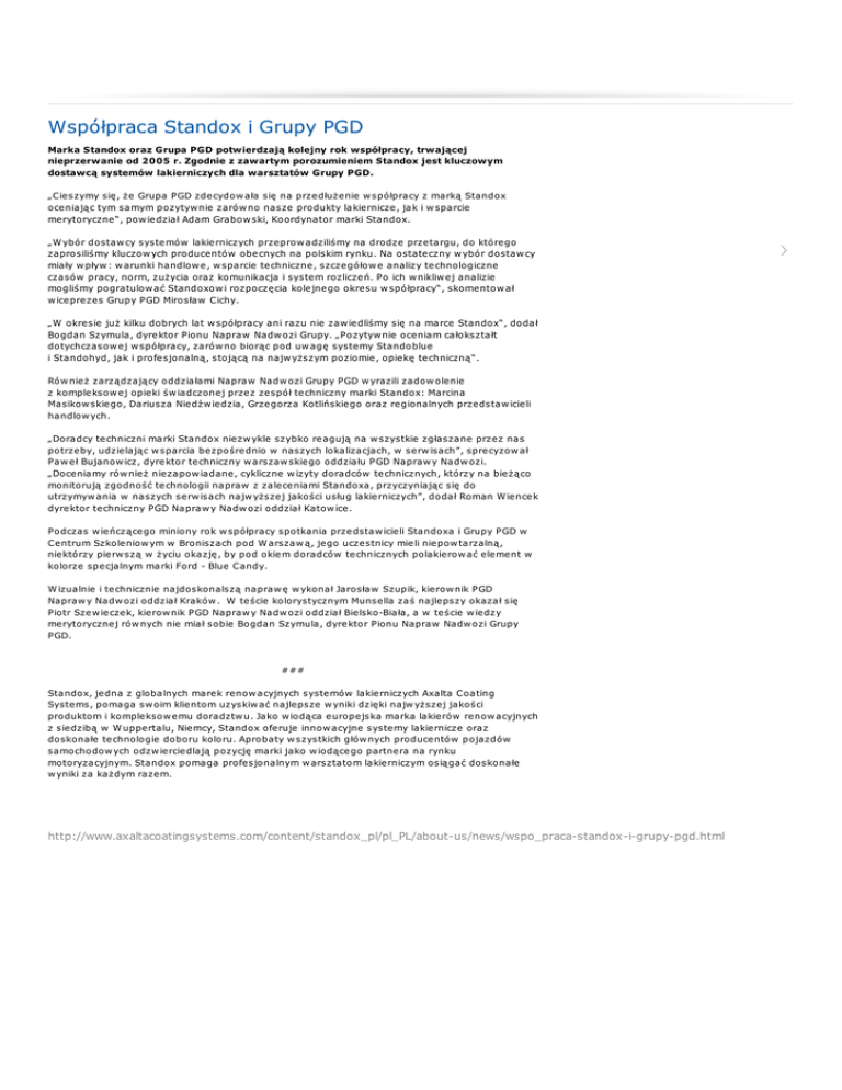 Współpraca Standox i Grupy PGD