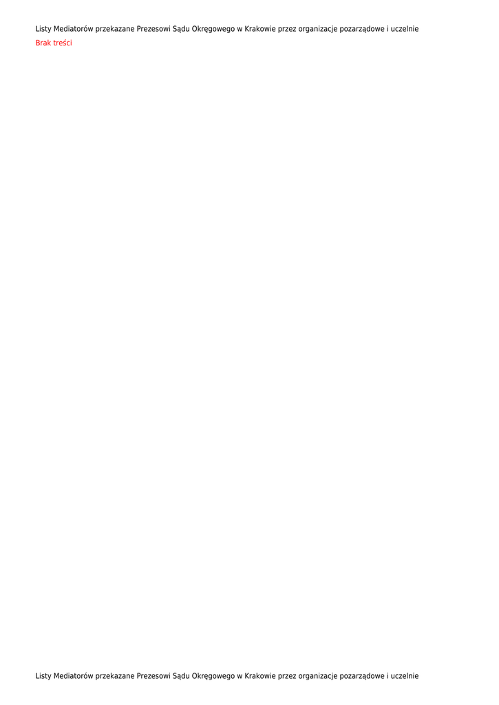 Listy Mediatorów przekazane Prezesowi Sądu Okręgowego w Krakowie przez organizacje pozarządowe i uczelnie Brak treści Listy Mediatorów przekazane Prezesowi Sądu Okręgowego w Krakowie przez organizacje pozarządowe i uczelnie