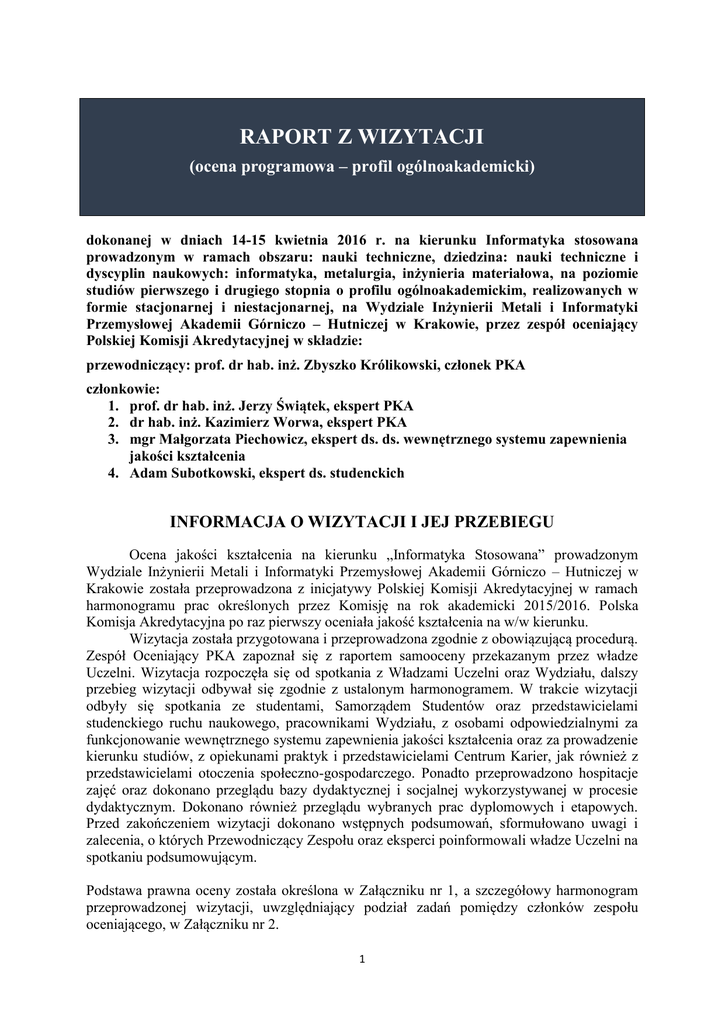 raport z wizytacji - Polska Komisja Akredytacyjna