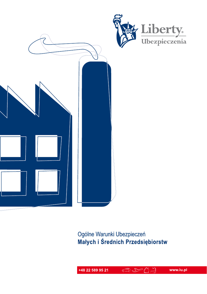 Spis treści Liberty Ubezpieczenia to trafny wybór! . . . . . . . . . . . . . . . . . . . . . . . . . . . . . . . . . . . . . . . . . . . . . . . . . . . . . . . . . . . . 2 OGÓLNE WARUNKI UBEZPIECZENIA MAŁYCH I ŚREDNICH PRZEDSIĘBIORSTW W LIBERTY . . . . . . . . . . . . . . . . . . . 4 CZĘŚĆ I. POSTANOWIENIA OGÓLNE I DEFINICJE . . . . . . . . . . . . . . . . . . . . . . . . . . . . . . . . . . . . . . . . . . . . . . . . . . . . Postanowienia ogólne . . . . . . . . . . . . . . . . . . . . . . . . . . . . . . . . . . . . . . . . . . . . . . . . . . . . . . . . . . . . . . . . . . . . . Definicje . . . . . . . . . . . . . . . . . . . . . . . . . . . . . . . . . . . . . . . . . . . . . . . . . . . . . . . . . . . . . . . . . . . . . . . . . . . . . . . . Zawarcie umowy ubezpieczenia – początek odpowiedzialności Ubezpieczyciela . . . . . . . . . . . . . . . . . . . . . . . . Zmiany w trakcie trwania umowy ubezpieczenia . . . . . . . . . . . . . . . . . . . . . . . . . . . . . . . . . . . . . . . . . . . . . . . . Rozwiązanie umowy ubezpieczenia – koniec odpowiedzialności Ubezpieczyciela . . . . . . . . . . . . . . . . . . . . . . . Składka ubezpieczeniowa . . . . . . . . . . . . . . . . . . . . . . . . . . . . . . . . . . . . . . . . . . . . . . . . . . . . . . . . . . . . . . . . . . Wyłączenia wspólne . . . . . . . . . . . . . . . . . . . . . . . . . . . . . . . . . . . . . . . . . . . . . . . . . . . . . . . . . . . . . . . . . . . . . . . Prawa i obowiązki stron . . . . . . . . . . . . . . . . . . . . . . . . . . . . . . . . . . . . . . . . . . . . . . . . . . . . . . . . . . . . . . . . . . . Ogólne zasady postępowania związanego z wypłatą odszkodowania lub świadczenia . . . . . . . . . . . . . . . . . . . Zasady ustalania odszkodowania w ubezpieczeniu mienia . . . . . . . . . . . . . . . . . . . . . . . . . . . . . . . . . . . . . . . . Zasady ustalania odszkodowania w ubezpieczeniu odpowiedzialności cywilnej . . . . . . . . . . . . . . . . . . . . . . . . Zasady ustalania świadczenia w ubezpieczeniu następstw nieszczęśliwych wypadków . . . . . . . . . . . . . . . . . . Roszczenia regresowe . . . . . . . . . . . . . . . . . . . . . . . . . . . . . . . . . . . . . . . . . . . . . . . . . . . . . . . . . . . . . . . . . . . . . 4 4 4 9 10 10 11 12 13 16 16 17 17 18 CZĘŚĆ II. UBEZPIECZENIE MIENIA OD POŻARU I INNYCH ZDARZEŃ LOSOWYCH . . . . . . . . . . . . . . . . . . . . . . . . . . . Zakres ochrony . . . . . . . . . . . . . . . . . . . . . . . . . . . . . . . . . . . . . . . . . . . . . . . . . . . . . . . . . . . . . . . . . . . . . . . . . . . Przedmiot ubezpieczenia . . . . . . . . . . . . . . . . . . . . . . . . . . . . . . . . . . . . . . . . . . . . . . . . . . . . . . . . . . . . . . . . . . . Suma ubezpieczenia . . . . . . . . . . . . . . . . . . . . . . . . . . . . . . . . . . . . . . . . . . . . . . . . . . . . . . . . . . . . . . . . . . . . . . . Wyłączenia odpowiedzialności . . . . . . . . . . . . . . . . . . . . . . . . . . . . . . . . . . . . . . . . . . . . . . . . . . . . . . . . . . . . . . . 19 19 20 21 22 CZĘŚĆ III. UBEZPIECZENIE MIENIA OD KRADZIEŻY Z WŁAMANIEM LUB ROZBOJU . . . . . . . . . . . . . . . . . . . . . . . . . Zakres ochrony . . . . . . . . . . . . . . . . . . . . . . . . . . . . . . . . . . . . . . . . . . . . . . . . . . . . . . . . . . . . . . . . . . . . . . . . . . . Przedmiot ubezpieczenia . . . . . . . . . . . . . . . . . . . . . . . . . . . . . . . . . . . . . . . . . . . . . . . . . . . . . . . . . . . . . . . . . . . Suma ubezpieczenia . . . . . . . . . . . . . . . . . . . . . . . . . . . . . . . . . . . . . . . . . . . . . . . . . . . . . . . . . . . . . . . . . . . . . . . Wymagane zabezpieczenia przeciwkradzieżowe . . . . . . . . . . . . . . . . . . . . . . . . . . . . . . . . . . . . . . . . . . . . . . . . . Wyłączenia odpowiedzialności . . . . . . . . . . . . . . . . . . . . . . . . . . . . . . . . . . . . . . . . . . . . . . . . . . . . . . . . . . . . . . . 23 23 23 24 24 26 CZĘŚĆ IV. UBEZPIECZENIE SPRZĘTU ELEKTRONICZNEGO OD WSZYSTKICH RYZYK . . . . . . . . . . . . . . . . . . . . . . . . . . Zakres ochrony . . . . . . . . . . . . . . . . . . . . . . . . . . . . . . . . . . . . . . . . . . . . . . . . . . . . . . . . . . . . . . . . . . . . . . . . . . . Przedmiot ubezpieczenia . . . . . . . . . . . . . . . . . . . . . . . . . . . . . . . . . . . . . . . . . . . . . . . . . . . . . . . . . . . . . . . . . . . Suma ubezpieczenia . . . . . . . . . . . . . . . . . . . . . . . . . . . . . . . . . . . . . . . . . . . . . . . . . . . . . . . . . . . . . . . . . . . . . . . Wyłączenia odpowiedzialności . . . . . . . . . . . . . . . . . . . . . . . . . . . . . . . . . . . . . . . . . . . . . . . . . . . . . . . . . . . . . . . 28 28 28 29 29 CZĘŚĆ V. UBEZPIECZENIE ODPOWIEDZIALNOŚCI CYWILNEJ . . . . . . . . . . . . . . . . . . . . . . . . . . . . . . . . . . . . . . . . . . . . 31 Zakres ochrony . . . . . . . . . . . . . . . . . . . . . . . . . . . . . . . . . . . . . . . . . . . . . . . . . . . . . . . . . . . . . . . . . . . . . . . . . . . 31 Wyłączenia odpowiedzialności . . . . . . . . . . . . . . . . . . . . . . . . . . . . . . . . . . . . . . . . . . . . . . . . . . . . . . . . . . . . . . . 31 CZĘŚĆ VI. UBEZPIECZENIE ASSISTANCE . . . . . . . . . . . . . . . . . . . . . . . . . . . . . . . . . . . . . . . . . . . . . . . . . . . . . . . . . . . . Zakres ochrony . . . . . . . . . . . . . . . . . . . . . . . . . . . . . . . . . . . . . . . . . . . . . . . . . . . . . . . . . . . . . . . . . . . . . . . . . . . Zakres pomocy technicznej . . . . . . . . . . . . . . . . . . . . . . . . . . . . . . . . . . . . . . . . . . . . . . . . . . . . . . . . . . . . . . . . . Zakres pomocy medycznej . . . . . . . . . . . . . . . . . . . . . . . . . . . . . . . . . . . . . . . . . . . . . . . . . . . . . . . . . . . . . . . . . . Zakres pomocy informacyjnej . . . . . . . . . . . . . . . . 
