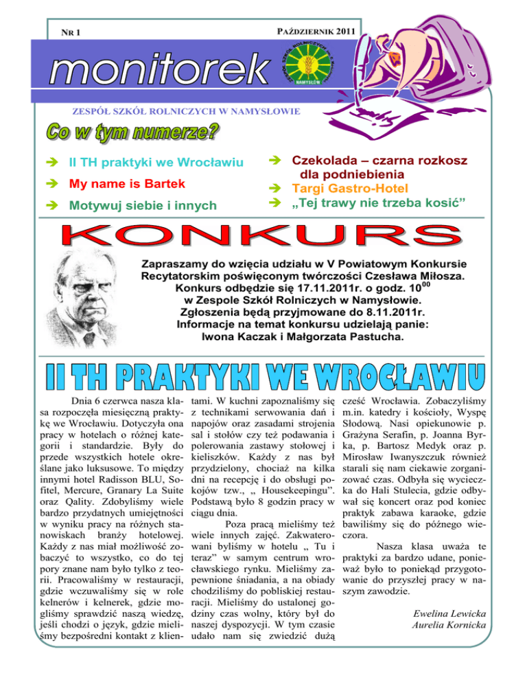 Monitorek Nr1 - Zespół Szkół Rolniczych w Namysłowie