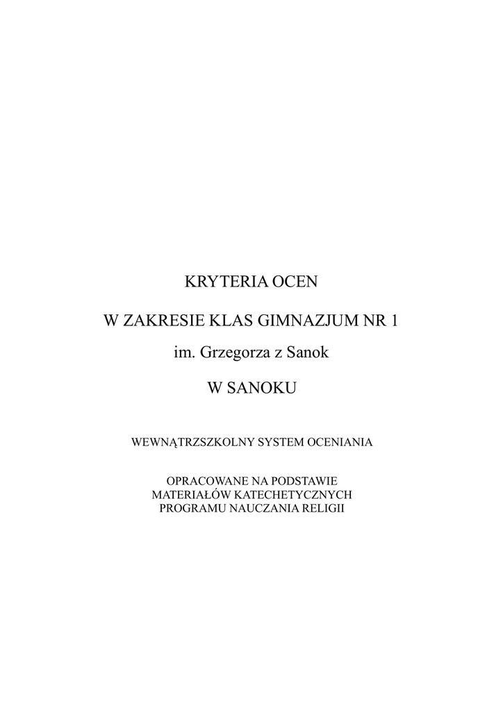 Kryteria z religii - Gimnazjum nr 1 w Sanoku