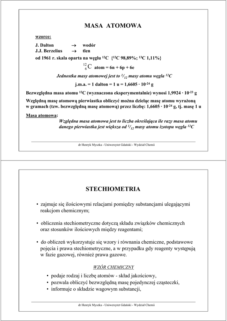 MASA ATOMOWA STECHIOMETRIA