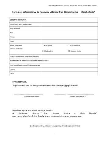 Formularz zgłoszeniowy do Konkursu „Starszy Brat, Starsza Siostra