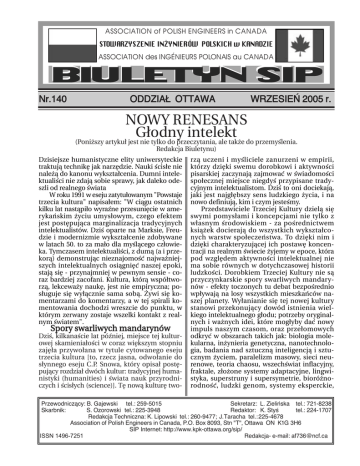 ASSOCIATION of POLISH ENGINEERS in CANADA STOWARZYSZENIE IN¸YNIERØW POLSKICH w KANADZIE ASSOCIATION des INGÉNIEURS POLONAIS au CANADA B I ULETYN SIP Nr.140 ODDZIAÒ OTTAWA WRZESIE 2005 r. NOWY RENESANS G¬odny intelekt (PoniΩszy artyku¬ jest nie tylko do przeczytania, ale takΩe do przemyßlenia. Redakcja Biuletynu) Dzisiejsze humanistyczne elity uniwersyteckie traktujå technik´ jak narz´dzie. Nauki ßcis¬e nie naleΩå do kanonu wykszta¬cenia. Dumni intelektualißci nie zdajå sobie sprawy, jak daleko odeszli od realnego ßwiata W roku 1991 w eseju zatytu¬owanym "Powstaje trzecia kultura" napisa¬em: "W ciågu ostatnich kilku lat naståpi¬o wyra≈ne przesuni´cie w ameryka˜skim Ωyciu umys¬owym, czego efektem jest post´pujåca marginalizacja tradycyjnych intelektualistów. Dziß oparte na Marksie, Freudzie i modernizmie wykszta¬cenie zdobywane w latach 50. to za ma¬o dla myßlåcego cz¬owieka. Tymczasem intelektualißci, z dumå (a i przekorå) demonstrujåc nieznajomoßç najwaΩniejszych intelektualnych osiågni´ç naszej epoki, stajå si´ - przynajmniej w pewnym sensie - coraz bardziej zacofani. Kultura, którå wspó¬tworzå, lekcewaΩy nauk´, jest nie empiryczna; pos¬uguje si´ wy¬åcznie sama sobå. ¸ywi si´ komentarzami do komentarzy, a w tej spirali komentowania dochodzi wreszcie do punktu, w którym zerwany zostaje wszelki kontakt z realnym ßwiatem". Spory swarliwych mandarynów Dziß, kilkanaßcie lat pó≈niej, miejsce tej kulturowej skamienia¬oßci w coraz wi´kszym stopniu zaj´¬a przywo¬ana w tytule cytowanego eseju trzecia kultura [to, rzecz jasna, odwo¬anie do s¬ynnego eseju C.P. Snowa, który opisa¬ post´pujåcy rozdzia¬ dwóch kultur: tradycyjnej humanistyki (humanities) i ßwiata nauk przyrodniczych i ßcis¬ych (science)]. T´ nowå kultur´ two- rzå uczeni i myßliciele zanurzeni w empirii, którzy dzi´ki swemu dorobkowi i aktywnoßci pisarskiej zaczynajå zajmowaç w ßwiadomoßci spo¬ecznej miejsce niegdyß przypisane tradycyjnym intelektualistom. Dziß to oni dociekajå, jaki jest najg¬´bszy sens ludzkiego Ωycia, i na nowo definiujå, kim i czym jesteßmy. Przedstawiciele Trzeciej Kultury dzielå si´ swymi pomys¬ami i koncepcjami nie tylko z w¬asnym ßrodowiskiem - za poßrednictwem ksiåΩek docierajå do wszystkich wykszta¬conych warstw spo¬ecze˜stwa. To dzi´ki nim i dzi´ki charakteryzujåcej ich postaw´ koncentracji na realnym ßwiecie Ωyjemy w epoce, która pod wzgl´dem aktywnoßci intelektualnej nie ma sobie równych w dotychczasowej historii ludzkoßci. Dorobkiem Trzeciej Kultury nie så przyczynkarskie spory swarliwych mandarynów - efekty toczonych tu debat bezpoßrednio wp¬ywajå na losy wszystkich mieszka˜ców naszej planety. Wy¬anianie si´ tej nowej kultury stanowi przekonujåcy dowód istnienia wielkiego intelektualnego g¬odu; potrzeby oryginalnych i waΩnych idei, które mog¬yby daç nowy impuls naszym czasom, oraz prze¬omowych odkryç w obszarach takich jak: biologia molekularna, inΩynieria genetyczna, nanotechnologia, badania nad sztucznå inteligencjå i sztucznym Ωyciem, paralelizm masowy, sieci neurenowe, teoria chaosu, wszechßwiat inflacyjny, fraktale, z¬oΩone systemy adaptacyjne, lingwistyka, superstruny i supersymetrie, bioróΩnorodnoßç, ludzki genom, systemy eksperckie, Przewodniczåcy: B. Gajewski tel.: 259-5015 Sekretarz: L. Zieli˜ska tel.: 721-8238 Skarbnik: S. Ozorowski tel.: 225-3948 Redaktor: K. Styß tel.: 224-1707 Redakcja Techniczna: K. Lipowski tel.: 260-9477; J.Taracha tel.: 225-4678 Association of Polish Engineers in Canada, P.O. Box 8093, Stn "T", Ottawa ON K1G 3H6 SIP Internet: http://www.kpk-ottawa.org/sip/ ISSN 1496-7251 Redakcja- e-mail: [email protected] punktualizm, logika rozmyta, rzeczywistoßç wirtualna, cyberprzestrze˜, teraflopowe superkomputery. I nie tylko... Humanista, czyli kto? W XV wieku termin "humanizm" sta¬ si´ elementem renesansowej wizji ßwiata stanowiåcego intelektualnå ca¬oßç. Florenty˜ski szlachcic czu¬, Ωe lektura Dantego, której nie towarzyszy zainteresowanie naukå i technikå, to zbyt ma¬o, to absurd. Leonardo by¬ wielkim artystå, wielkim uczonym i wybitnym konstruktorem. Micha¬ Anio¬ by¬ byç moΩe jeszcze wspanialszym artystå i inΩynierem. Obaj byli geniuszami, holistycznymi gigantami. Nie do pomyßlenia by¬o dla nich, Ωe moΩe byç uznany za humanist´ ktoß, kto lekcewaΩy ca¬y dorobek nauki i techniki. Nadszed¬ czas, by powróciç do tej ca¬oßciowej wizji. Tymczasem w XX wieku, w epoce wielkiego post´pu naukowego, zamiast nauk´ i technologi´ umießciç w centrum naszego intelektualnego ßwiata - poprzez stworzenie systemu edukacyjnego, w którym nauki ßcis¬e i przyrodnicze traktowane by¬yby na równi z literaturå i sztukå - oficjalna kultura wyΩsza po prostu wyrzuci¬a je poza nawias. Uczeni-humanißci postrzegajå technik´ wy¬åcznie jako narz´dzie, a poniewaΩ to oni tworzå elity uniwersyteckie, uda¬o im si´ sprawiç, Ωe nauki ßcis¬e znalaz¬y si´ poza kanonem wykszta¬cenia i kanonem "sztuk wyzwolonych", a w ten sposób równieΩ poza horyzontem myßlowym wielu m¬odych ludzi, wkraczajåcych w akademicki ßwiat. Ich wychowankowie zaß, zajåwszy po pewnym czasie miejsce dawnych elit, tak bardzo oddalili si´ od realnego ßwiata, Ωe nie byli go w stanie zrozumieç. Nadal zresztå na (zbyt) wielu uczelniach intelektualne spory koncentrujå si´ wokó¬ tego, kto w roku 1937 by¬, a kto nie by¬ stalinistå, lub teΩ jak rozmieszczano goßci podczas weekendowych spotka˜ w Bloomsbury na poczåtku XX wieku. (Grupa Bloomsbury - do której naleΩeli mi´dzy innymi Virginia Woolf i John Maynard Keynes - tworzy¬a jedno z najbardziej wp¬ywowych ameryka˜skich ßrodowisk intelektualnych - przyp. t¬um.). Oczywißcie nie chc´ w tym momencie powiedzieç, Ωe studiowanie historii jest marnowaniem czasu. Przeciwnie - historia ukazuje nam naszå przesz¬oßç oraz pochodzenie, a znajomo