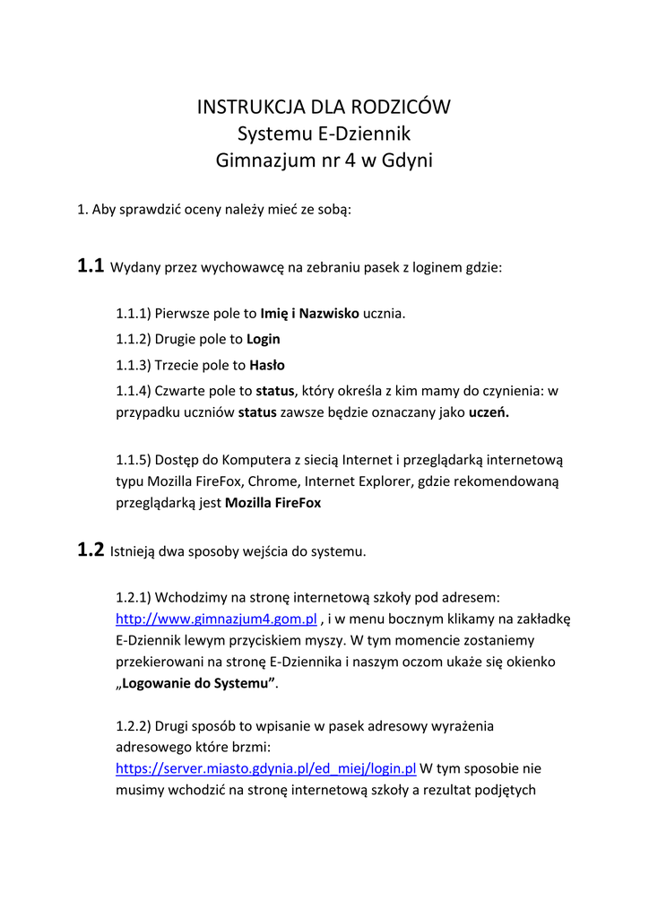 instrukcja dla rodziców - Gimnazjum nr 4 w Gdyni