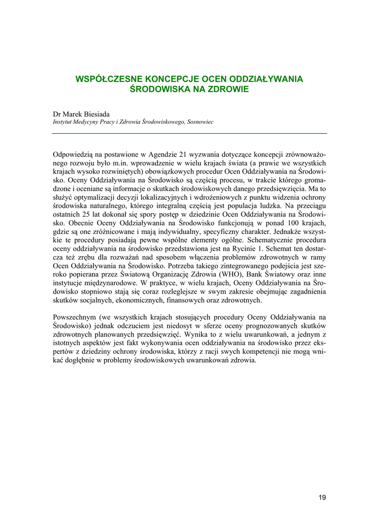współczesne koncepcje ocen oddziaływania środowiska na zdrowie