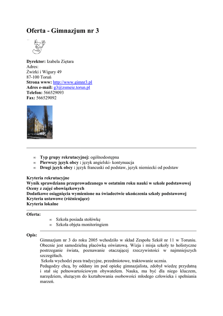 Oferta - Gimnazjum n - Gimnazjum nr 3 w Toruniu