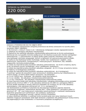 DZIAŁKA na SPRZEDAŻ 2613/3489/OGS Opis