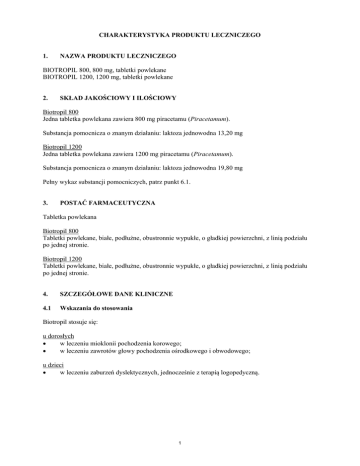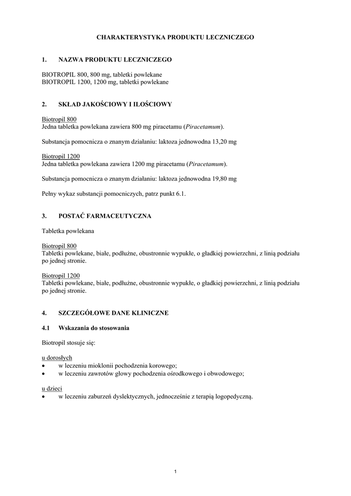 2,4 g produktu leczniczego Biotropil na dobę w 3 dawkach podzielonych po 0,8 g przez 8 tygodni.
