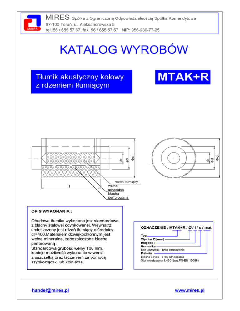 MIRES tel. 56 / 655 57 67, fax. 56 / 655 57 67 NIP: 956-230-77-25 d1 dr d d dr d1 MTAK+R l mineralna blacha perforowana OPIS WYKONANIA : Typ Uszczelka Bez uszczelki - brak oznaczenia Blacha ocynk - brak oznaczenia Stal nierdzewna 1.4301(wg.PN-EN 10088) [email protected] www.mires.pl