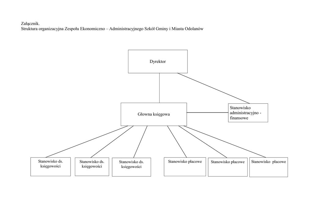 Załącznik. Struktura organizacyjna Zespołu Ekonomiczno – Administracyjnego Szkół Gminy i Miasta Odolanów Dyrektor Głowna księgowa Stanowisko ds. księgowości Stanowisko ds. księgowości Stanowisko ds. księgowości Stanowisko płacowe Stanowisko administracyjno finansowe Stanowisko płacowe Stanowisko płacowe