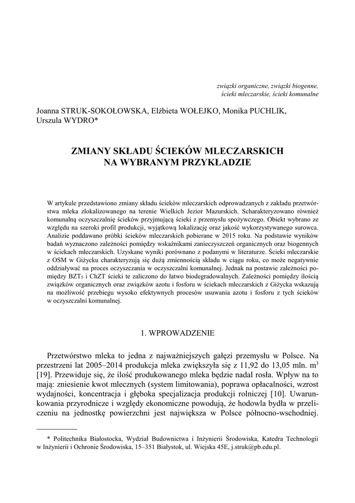 Zmiany składu ścieków mleczarskich na wybranym - Eko-DOk