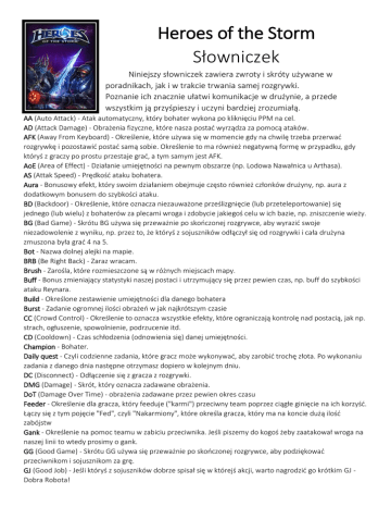 Niniejszy słowniczek zawiera zwroty i skróty używane w