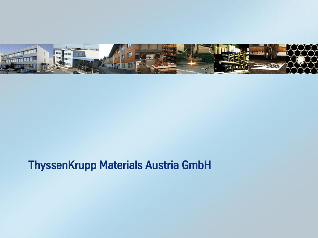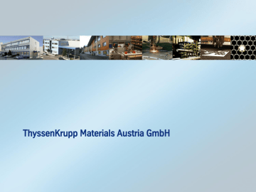 ThyssenKrupp Materials Austria GmbH Organizacja Koncernu Business Area Materials Services ThyssenKrupp Materials Austria 2 ThyssenKrupp Materials Austria Historia firmy TKMA 3 ThyssenKrupp Materials Austria Centrala w Wiedniu - Freudenauer rzeczny Powierzchnia hal 8.000 m² Powierzchnia biur 1.200 m² 69 pracowników 17 pił taśmowych 1 urządzenie do cięcia plazmą Wiele maszyn obróbczych Bocznica kolejowa Port śródlądowy- port Wien Łączność autostradowa 4 ThyssenKrupp Materials Austria Oddział Wiedeń -Schillingstraße Łączna pow. 23.000 m² Pow. hal 7.200 m² Pow. biurowa 1.150 m² 94 pracowników Gazowe cięcie palnikiem n Obróbka powierzchniowa Cięcie mikroplazmą Cięcie skośne krawędzi Obróbka cieplna 5 Prostowanie ThyssenKrupp Materials Austria Oddział Salzburg Pow. hal 3.000 m² Pow. biurowa 300 m² 8 Pracowników 3 piły do cięcia płyt aluminiowych do grub. 150 mm Najlepszy węzeł logistyczno Komunikacyjny w Austrii 6 ThyssenKrupp Materials Austria Położenie strategiczne firmy TKMA Polska Czechy Słowacja Austria Węgry Słowenia Chorwacja Bośnia i Hercegowina Serbia Czarnogóra Kosowo Rumunia Bułgaria Macedonia Albania 7 ThyssenKrupp Materials Austria Zakres działalności TKM Portfolio: Stal narzędziowa Stale do pracy na zimno Stale do pracy na gorąco Stale szybkotnące Stale do przetwórstwa Tworzyw sztucznych Stale proszkowe Jako półwyroby, pręty, blachy & płaskowniki precyzyjne Stal tniemy na żądany wymiar na najnowocześniejszych urządzeniach z zachowaniem prostokątności i dokładnych wymiarów, możliwa również obróbka powierzchni : frezowanie, szlifowanie oraz wiercenie Więcej szczegółów otrzymacie Państwo po złożeniu zapytania. 8 Portfolio: Stale jakościowe Walcowane na gorąco Blacha w kręgach Walcowana krzyżowo (Quarto) Taśma gruba i średnia Gatunki specjalne, odporne na ścieranie i o wysokich Parametrach wytrzymałościowych Stale konstrukcyjne odporne na warunki pogodowe Blachy zimnowalcowane Blachy o powlekanej powierzchni Walcówka Szyny Wyroby długie Profile (Pręty/Dźwigary ) Rury okrągłe & profilowe, Profile ażurowe Więcej szczegółów otrzymacie Państwo po złożeniu zapytania. ThyssenKrupp Materials Austria Zakres działalności TKM Portfolio : Stale konstrukcyjne szlachetne do nawęglania Do ulepszania Wytrzymałe na wys. temperatury łożyskowe Do azotowania W uzupełnieni do pow. Standardowego programu sprzedaży dostarczamy również: • • • • BLACHY ze stali konstrukcyjnej stopowej i niestopowej STAL CIĄGNIONĄ – popularne gatunki ODLEWY w tym ODLEWY PRECYZYJNE PÓŁWYROMY wykonane według rysunku klienta Więcej szczegółów otrzymacie Państwo po złożeniu zapytania. 9 Portfolio: Nierdzewne, kwasoodporne, żaroodporne taśmy, blachy Rury oraz pręty Odpowiednie dodatki spawalnicze do w/w produktów Stale nierdzewne i kwasoodporne Spełniające najwyższe wymagania techniczne: • Odporność na agresywne środki • Wysoka wytrzymałość oraz ciągliwość • Odporność na obciążanie wysokimi temperaturami Więcej szczegółów otrzymacie Państwo po złożeniu zapytania. ThyssenKrupp Materials Austria Zakres działalności TKM Portfolio: Rury Rury standardowe Rury bezszwowe jakościowe Rury precyzyjne Bezszwowe do hydrauliki & Pneumatyki Rury nierdzewne i kwasoodporne Rury konstrukcyjne ażurowe Rury przewodowe Rury do przemysłu petrochemicznego Osprzęt do rur Profile specjalne Więcej szczegółów otrzymacie Państwo po złożeniu zapytania. 10 Portfolio: Metale nieżelazne Aluminium Mosiądz Miedź i jej stopy Metale wysokostopowe Magnesy trwałe Drut do przewodów grzejnych Stopy FERRO TITANIT Odlewy precyzyjne aluminium / stal Blacha zimnowalcowana powlekanaAlu Zink Na życzenie cięcie blach, prętów- & formatki, powlekane folią ochronną & Clean Coil. Elementy aluminiowe cięte z blachy do grub. 150mm Więcej szczegółów otrzymacie Państwo po złożeniu zapytania. ThyssenKrupp Materials Austria Zakres działalności TKM Portfolio: Gatunki: S 235 JR S 235 J2+N S 355 J2+N S 355 XAR 400 XAR 450 XAR 500 S 690 QL P 265 GH C 45 42CRMO 4 Usługi serwisowe Grubość blachy: 3 – 120 mm 10 – 120 mm 3 – 500 mm 80 – 500 mm 4 – 100 mm 4 – 100 mm 4 – 100 mm 4 – 100 mm 10 – 120 mm 10 – 120 mm 10 – 120 mm Możliwości techniczne: Cięcie gazowe Ciecie mikroplazmą Cięcie skośne ( krawędzie ) Piaskowanie Obróbka cieplna Prostowanie Więcej szczegółów otrzymacie Państwo po złożeniu zapytania. 11 ThyssenKrupp Materials Austria Serwis i portfolio kompetencji 12 ThyssenKrupp Materials Austria Certyfikaty ISO 13 ThyssenKrupp Materials Austria ThyssenKrupp Materials Austria GmbH