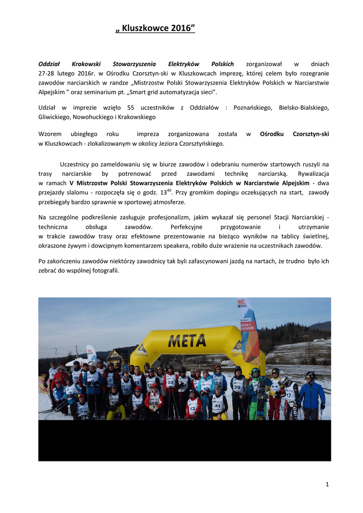 Kluszkowce 2016 - Stowarzyszenie Elektryków Polskich