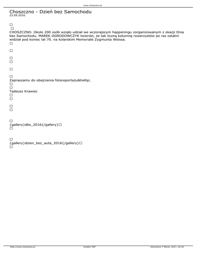 bez Samochodu. MAREK OGRODOWCZYK twierdzi, że tak liczną kolumnę rowerzystów po raz ostatni