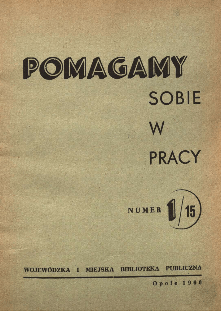 SOBIE W PRACY WOJEWÓDZKA I MIEJSKA BIBLIOTEKA PUBLICZNA Opole 1960 POMAGAMY SOBIE W PRACY „Nie ma dobrych książek dla głupca; możliwe, źe nie ma złych dla człowieka rozumu". Diderot (1713 - 1784) Księgozbiór i Vnfcrm.-Bibliofft. & Opolu 4 • V- "' •/ Ś^Sl. UDZIAŁ BIBLIOTEK W UCZCZENIU TYSIĄCLECIA PAŃSTWA POLSKIEGO Cały nasz kraj przygotowuje się do uroczystego uczczenia wielkiego jubileuszu — Tysiąclecia Państwa Polskiego. Wszelkie akcje i obchody, które wypełnią lata 1960 — 1986 powinny skupić myśli o przeszłości, teraźniejszości i przyszłości narodu — powinny ukazać pełną chwały przeszłość naszego Państwa, dorobek Polski Ludowej i jej wkład w budownictwo socjalizmu. Głównym celem działalności kulturalno-oświatowej tego okresu będzie kształtowanie aktywnego stosunku obywatela do przyszłości kraju, w którym żyje, dążenie do pogłębienia świadomości politycznej, pomnażanie wyników wspólnej pracy, podnoszenie na wyższy poziom kultury naszego narodu, rozwijanie uczuć patriotycznych. Realizować się będzie hasło „Polska krajem ludzi kształcących się" zarówno przez trwałe poczynania n.p. rozwój placówek kult.-oświat. kursów, uniwersytetów powszechnych jak i masowe akcje społeczno-oświatowe. Wydobywać się będzie i popularyzować tradycje postępowej myśli naukowej, dorobek polskiej nauki, polskich uczonych na przestrzeni dziejów, popularyzować najnowsze osiągnięcia nauki. Zwracać się będzie uwagę na zabytki i pomniki kultury, a sprawa ich ochrony i konserwacji będzie jednym z czołowych zadań społeczno-wychowawczych. Dążyć się będzie do ożywienia kulturalnego środowisk, do rozwinięcia sztuki ludowej i zwiększenia jej roli w życiu społecznym. W trosce o pełne wykorzystanie okresu obchodów Tysiąclecia w wojew. opolskim będzie się popularyzować wiedzę o Opolu i Ziemi Opolskiej, a mieszkańcom tej Ziemi powie się jak najwięcej o Ojczyźnie — jej przeszłości i skarbach dnia dzisiejszego. Uroczystości jubileuszowe naszych miast, i wsi. wszelkie zjazdy, konkursy, pokazy, wystawy bardzo uroczyste i te skromne imprezy różnego rodzaju staną się najlepszą okazją do ukazania naszego dorobku i drogi, którą kroczyć będziemy. Bogaty program działalności kulturalno-oświatowej w latach 1960 — 1966 przewiduje następujący plan tematyczny: 1960 i'. — Rok inauguracji Obchodów. — Obchody grunwaldzkie — manifestacje pokojowe; polityki narodu polskiego, solidarność obozu pokoju. — Rok Chopinowski — święto muzyki polskiej. — Rok M. Konopnickiej. — Rok Warmii i Mazur, Pomorza i Kujaw. 1961 r. — 1.000 lat nauki polskiej. — Ofensywa oświatowa. — Rok Ziemi Białostockiej. Lubelskiej i Rzeszowskiej. 1962 r. — Ofensywa kulturalna. — Piśmiennictwo, plastyka, upowszechnienie kultury. — Rozwój bibliotek i czytelnictwa miarą kultury narodu. — Rok Ziemi Warszawskiej i Łódzkiej. 1963 r. — Tradycje walk o wyzwolenie narodowe i społeczne. — Ośrodki postępowej walki społecznej i wolnościowej Śląska. — Od Insurekcji Kościuszkowskiej do powstania Krajowej Rady Narodowej. 1964 r. — — — — Rok nauki polskiej. Rok Stefana Żeromskiego. .Jubileusz Uniwersytetu Jagiellońskiego. 1000 lat pracy narodu polskiego (rolnictwo, rzemiosło, przemysł). — 20-lecie Polski Ludowej — początek uroczystości. — Rok Ziemi Krakowskiej i Kieleckiej. 1965 r. — 20-lecie Polski Ludowej. — 1000 lat państwowości polskiej. — Rok Wielkopolski — najstarszych miast i Ziem Zachodnich. — Podsumowanie Planu 5-letniego. — Polska za lat 10. — Rok podsumowania. W oparciu o wyżej podaną tematykę planuje się w bibliotekach naszego województwa pewne formy wspólnego działania o charakterze ogólnokrajowym, pewne w zasięgu województwa. Oto one: 1960 r. — Udział w Ogólnopolskim Konkursie Recytatorskim w Roku M. Konopnickiej. — Wystawa objazdowa „Życie i twórczość M. Konopnickiej" Imprezy czytelnicze związane z postacią M. Konopnickiej. — Wystawa książek „Polska w walce z germanizmem". — Konkurs czytelniczo-krajoznawczy: „Warmia — Mazury". — Konkurs czytelniczo-historyczny „Grunwald". — Spotkanie z pisarzami Warmii i Mazur. 1961 r — Udział bibliotek powszechnych i związkowych w Konkursie Czytelniczym o odznakę M. Konopnickiej. — Udział w VIII Ogólnopolskim Konkursie Recytatorskim. — Wycieczka bibliotekarzy opolskich do miejscowości związanych z życiem M. Konopnickiej. — Wystawa „1000 lat nauki polskiej" (objazdowa). — Wojewódzki Zjazd Przyjaciół Książki i Biblioteki. 1962 r. — Wystawa i inne formy ukazujące „Piśmiennictwo polskie na przestrzeni wieków". — Opracowanie i udostępnienie społeczeństwu materiałów dotyczących rozwoju bibliotek i czytelnictwa w Polsce — na Opolszczyźnie. — Udział w IX Ogólnopolskim Konkursie Recytatorskim. — Popularyzacja książek z zakresu oświaty sanitarne], kultury życia codziennego. — Konkurs na najestetyczniejszy wygląd wnętrza biblioteki i zewnętrznego obejścia. — Obieranie dla niektórych bibliotek patronatów, nadawanie nazw. 1963 r. — Udział w X Ogólnopolskim Konkursie Recytatorskim — Konkursy czytelniczo-turystyczne i historyczne dla popularyzowania tradycji rewolucyjnych Opolszczyzny — miejsc powstań i walk narodowo-wyzwoleńczych. — Przyjęcie wycieczek bibliotekarzy z innych regionów Polski dla ukazania im szlaku miejsc powstań i walk narodowo-wyzwoleńczych na Śląsku. — Konkurs na najlepszą imprezę czytelniczą pod hasłem ,.Od Konstytucji 3 Maja do P.K.W.N. 22. VII. 1944 r. — Propaganda oświaty zawodowej i rolniczej. 1964 r. — Udział bibliotek w Ogólnopolskim Konkursie Czytelniczym o odznakę Stefana Żeromskiego. — Udział w Ogólnopolskim Konkursie R e c y t a t o r s k i m w Roku Stefana Żeromskiego. — Wystawy (wspólnie z różnymi instytucjami — organizacjami) p.t. 20-lecie Pol