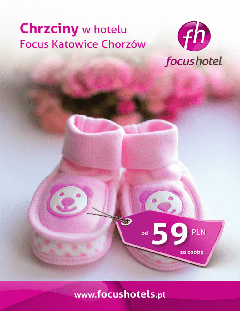 Chrzciny w hotelu Focus Katowice Chorzów www.focushotels.pl Zapraszamy do skorzystania z wyjątkowej oferty Hotelu Focus Katowice Chorzów, przygotowanej specjalnie z myślą o magicznym dniu jakim są Chrzciny Dziecka DLACZEGO WARTO WYBRAĆ NAS Indywidualne podejście do każdego zapytania, wsparcie i doradztwo Wyśmienita kuchnia oraz specjalne menu dla dzieci Tort w prezencie od hotelu Klimatyzowana sala na wyłączność Dekoracja stołów Kącik zabaw dla dzieci Dodatkowe atrakcje na życzenie Bezpłatny parking dla Gości przed hotelem MENU SERWOWANE MENU WIELOPORCJOWE ZUPA /jedna do wyboru/ ZUPA 59 zł / osoba Tradycyjny rosół królewski z kawałkami kurczaka Krem ze świeżych pomidorów z pesto bazyliowym Wiosenne minestrone z młodymi warzywami Wykwintny krem z brokułówz prażonymi migdałami DANIE GŁÓWNE /jedno do wyboru/ Śląska rolada wieprzowa podawana z sosem pieczeniowym Schab duszony w pomidorach w towarzystwie bekonu Roladka z indyka nadziewana szpinakiem i serem feta podawana z sosem myśliwskim Sakiewki wieprzowe z farszem grzybowym Filet z dorsza saute z masłem czosnkowym i cząstką cytryny 79 zł / osoba Tradycyjny rosół królewski z kawałkami kurczaka DANIE GŁÓWNE Kurczak Gordon Blue nadziewany szynką i serem Tradycyjna rolada śląska z sosem pieczeniowym Filet z dorsza saute z masłem czosnkowym i cząstką cytryny DODATKI /dwa do wyboru/ Młode ziemniaczki z koperkiem Pieczone ziemniaki w ziołach Kluski śląskie z dziurką Ryż z masłem i aromatyczną natką pietruszki DODATKI /jeden do wyboru/ SURÓWKI /dwie do wyboru/ Młode ziemniaczki z koperkiem Pieczone ziemniaki w ziołach Kluski śląskie z dziurką Ryż z masłem i aromatyczną natką pietruszki Buraczki na zimno Modra kapusta z boczkiem Bukiet surówek sezonowych Marchewka paryska glazurowana miodem Surówka z selera z rodzynkami sułtańskimi SURÓWKI /jedna do wyboru/ Wiosenny bukiet surówek Marchewka paryska glazurowana miodem Kapusta modra z boczkiem Bukiet warzyw blanszowanych DESER /jeden do wyboru/ Aromatyczne tiramisu Puchar lodowy w towarzystwie owoców otulonych bitą śmietaną Orzeźwiający posset cytrynowy Szarlotka podawana z gałką lodów waniliowych NAPOJE /bez ograniczeń/ świeżo parzona kawa i herbata woda mineralna w dzbankach z cytryną DESER Panna cotta z sosem malinowym NAPOJE /bez ograniczeń/ świeżo parzona kawa i herbata woda mineralna w dzbankach z cytryną MENU DLA DZIECI DO LAT 6 ZIMNA PŁYTA ZUPA /jedna do wyboru/ Półmisek mięs pieczonych i wybór wędlin Deska serów Śledzie w marynatach ziołowych Sałatka Cezar z kurczakiem Wybór pieczywa, masło 33 zł / osoba 29 zł / osoba Delikatna zupa pomidorowa z makaronem i gotowanym kurczakiem Rosół z makaronem i marchewką DANIE GŁÓWNE /jedno do wyboru/ Złociste paluszki rybne Grillowana pierś z kurczaka DODATKI /jedno do wyboru/ Młode ziemniaczki z koperkiem Frytki domowe SURÓWKI /jedna do wyboru/ Marchewka paryska z masełkiem Klasyczna surówka z marchwi i jabłka DESER /jeden do wyboru/ Puchar lodowy z sosem owocowym Galaretka z owocami otulonymi bitą śmietaną NAPOJE sok owocowy Nie zwlekaj rezerwuj już dziś Hotel Focus Katowice Chorzów 41-506 Chorzów, ul. Armii Krajowej 15 tel. +48 32 707 45 80 [email protected] Anna Klimek Kierownik Działu Konferencji tel: +48 66 99 79 190 e-mail: [email protected] www. www.focushotels focushotels.pl .pl